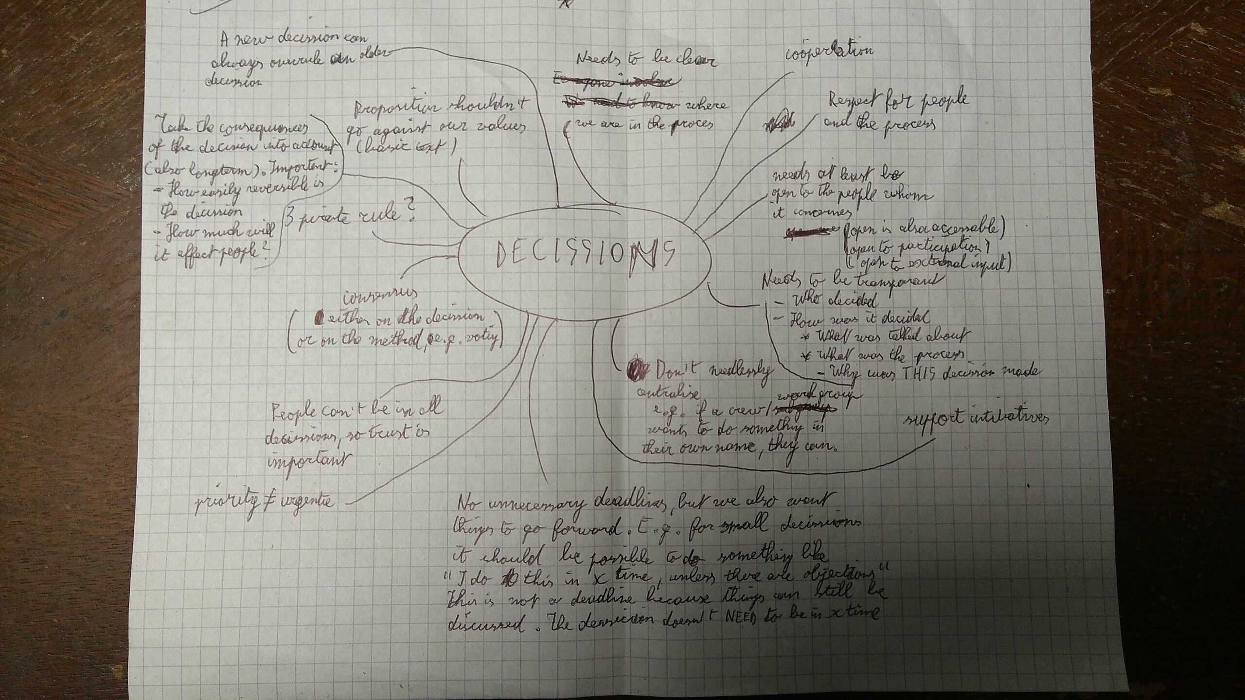 The mindmap of 'values' that we want decisions to have. From the decision making workgroup.